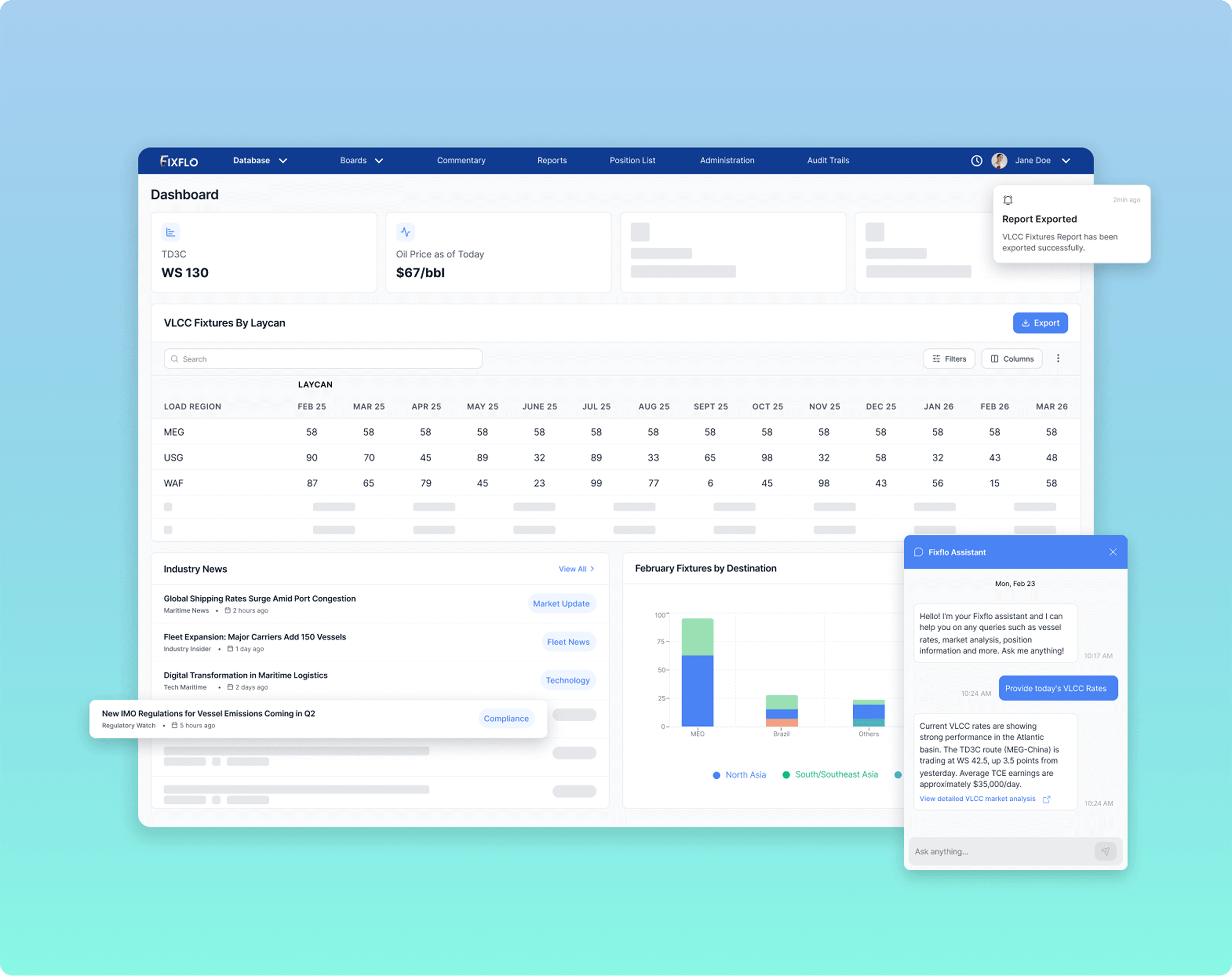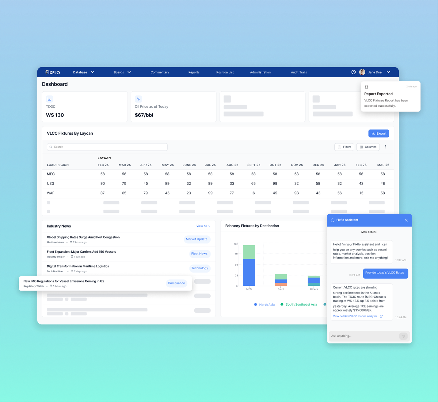 Fixflo is a cloud-based software platform used to collect and store data for the purpose of processing for business intelligence analytics purposes for the maritime industry. Fixflo enables easy creation of a relational database which improves efficiency in creating analyses, charts, documents and reports.